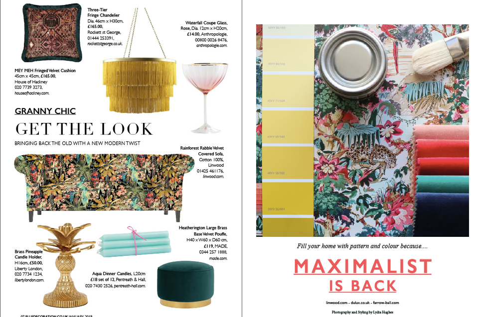 I choose to design my own version of ELLE Decoration and create a styled photoshoot and trend report on 'Granny Chic' which discussed the revival of maximalism and nostalgia in design and interiors.